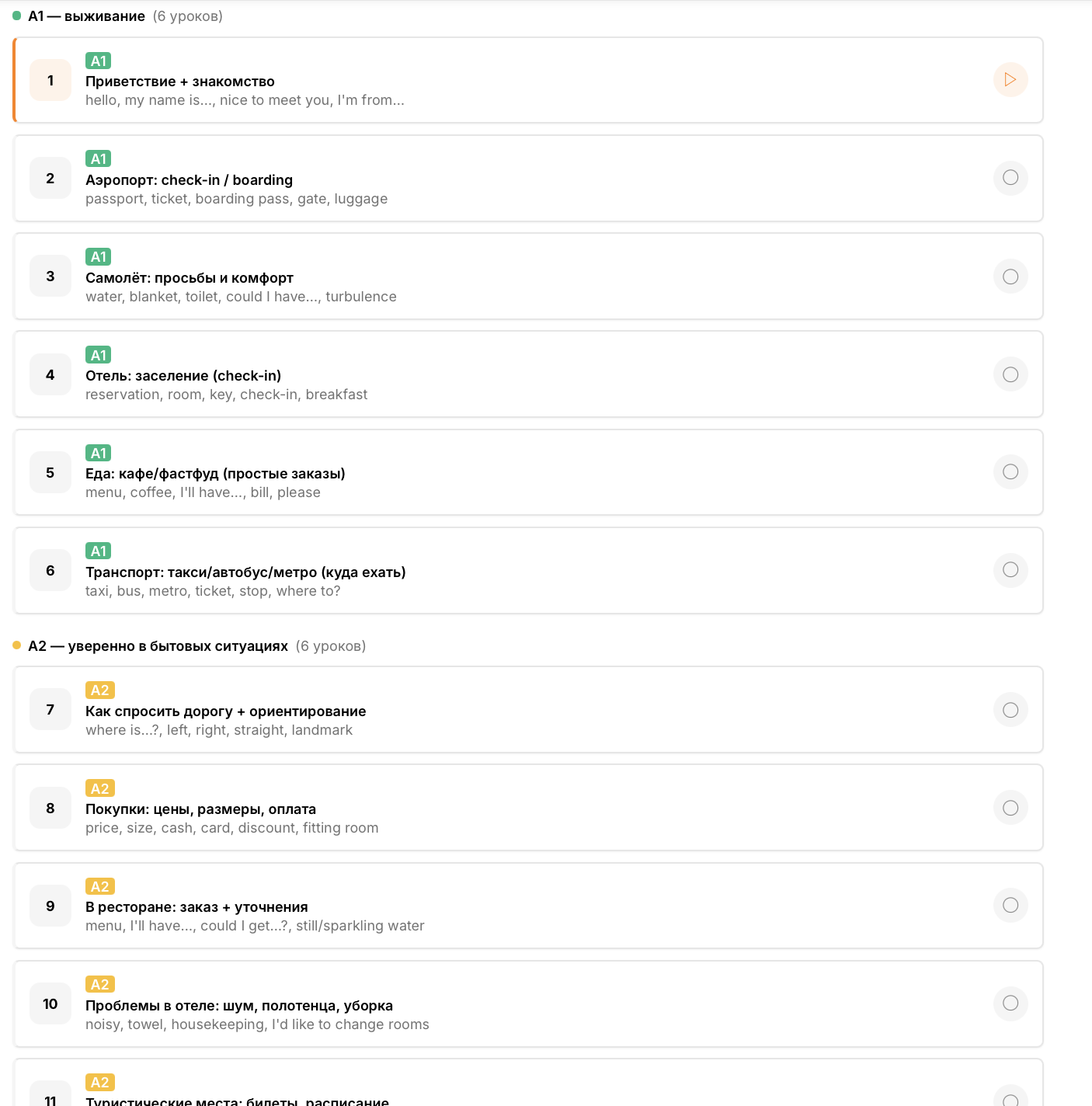 Короткие фразы, диалоги и сценарии. Сразу практика, без длинных теорий.