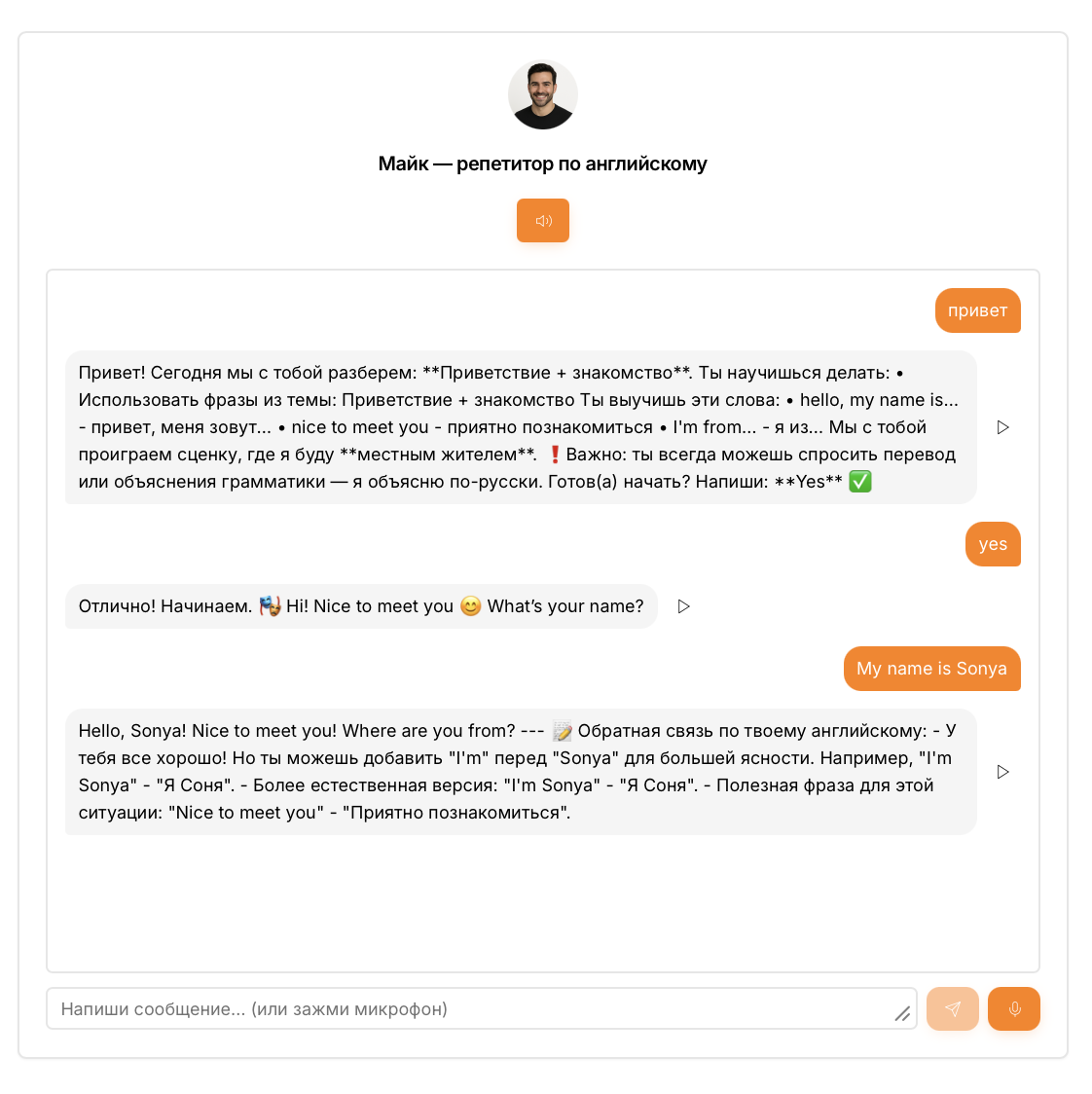 В каждом уроке: готовые фразы, один диалог и ролевые игры с ИИ. Без длинных лекций.